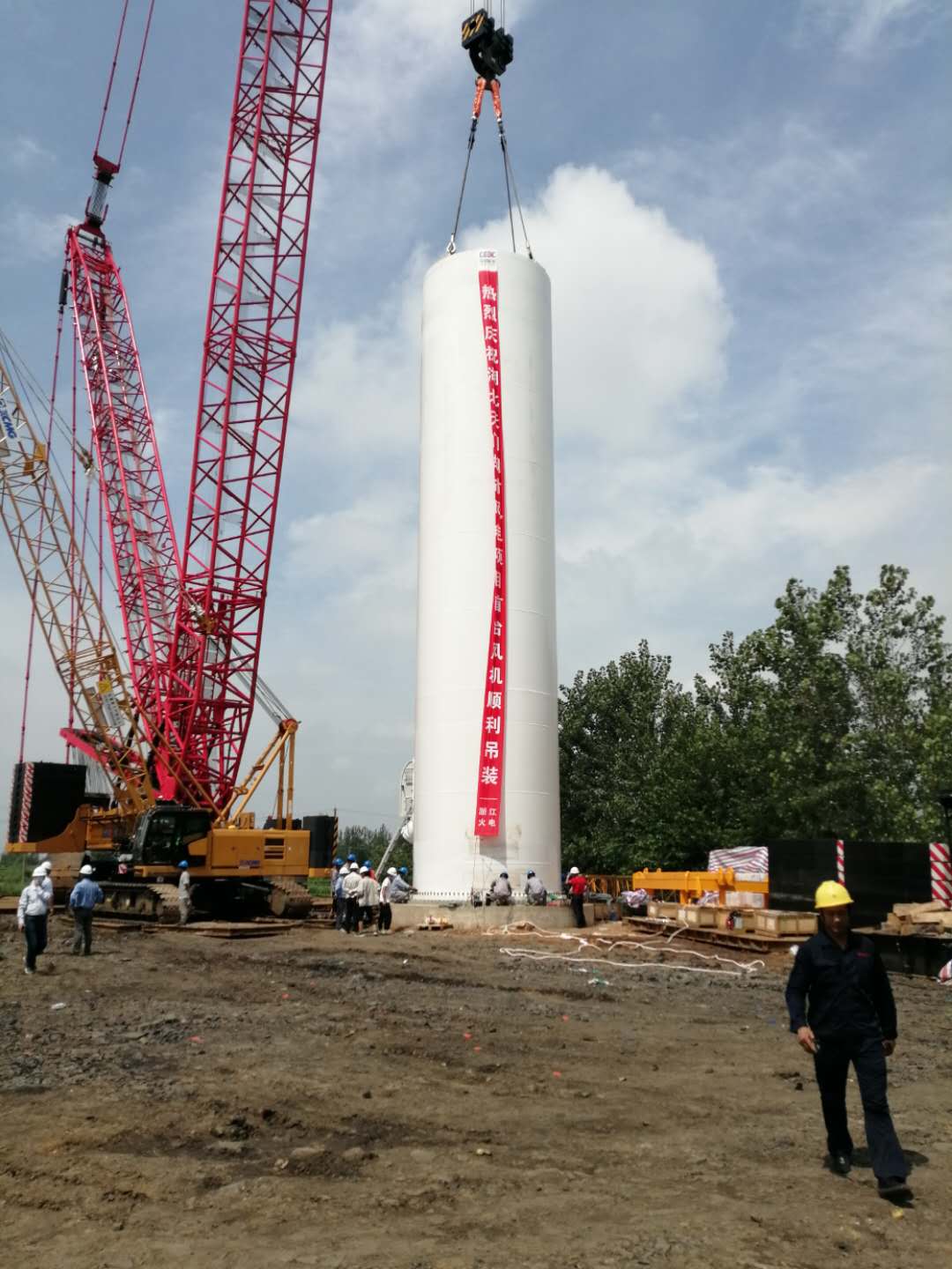 2020年7月29日,四川同創(chuàng)建設(shè)工程管理有限公司在湖北項(xiàng)目的“湖北天門胡市風(fēng)電項(xiàng)目首臺(tái)風(fēng)機(jī)”今天順利完成吊裝任務(wù)!